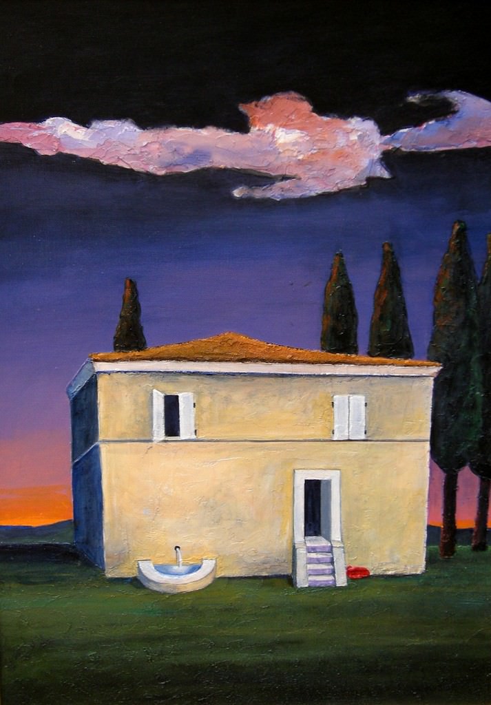 La scelta di questo tipi di opere è con prevalenza una rappresentazione di case mediterranee, di carattere fantastico-irreale, che sembrano perdute nel tempo galleggianti nella coscienza di chi le guarda, sospese tra un sogno e solida realtà in un mix che le rende quasi magnetiche, dove lo sguardo correndo lungo i muri, seguendo i giochi cromatici cerca la scintilla della vita che ha dato forma a quell'opera.