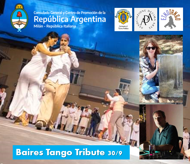 Dalle ore 18.30 Baires Tango Tribute con esibizione di tango rioplatense dei Maestri Alessandro Guerri e Anna Boglione in omaggio all' Artista bonaerense in mostra, preceduta dalla lettura di un brano di J.L.Borges per voce attoriale di Fabio Pasquet.