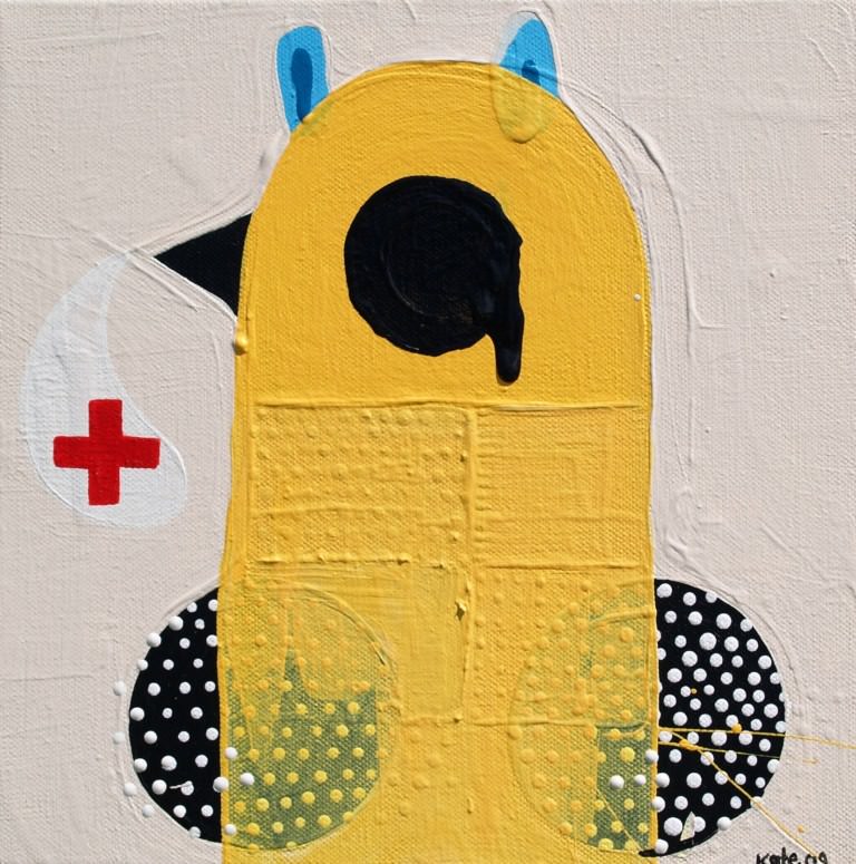 "Chux Redux" represents a regression back into childhood, when the artist played with Care Bears and Monchhichis, hand-sewing creatures with Chux Wipes. To quote Chiara Serri’s critical text, "Kate McCarthy paints trucks, caterpillars and birds through continuous combinations of circles, squares and triangles. Elements that, together with a painterly use of acrylic, revisits the charming essence of a child’s painting, an unfiltered expression of the deep life of things ".