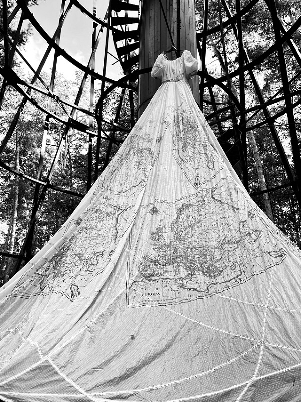 L’opera “Abito da sposa d’Europa" è un abito da sposa formato da un paracadute sul quale è stampata la mappa dell'Europa, che vuole rappresentare l'immagine di un'eterna sposa che ha nascosto una “via di fuga”, una mappa di evasione, che l’aiuterà a ritornare alla realtà, ai suoi parenti, alle radici, a sé stessa