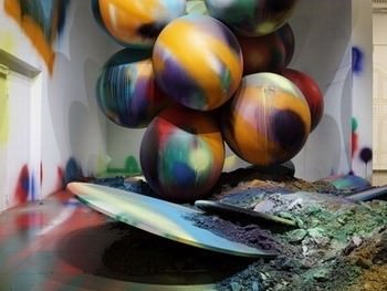 La Palazzina dei Giardini come non si era mai vista: trionfo del colore, della sua energia e della sua potenza, in un contenitore architettonico che risulta completamente nuovo, trasformato per mano d’artista in dipinto tridimensionale. Dalle tele di grandi dimensioni, agli oggetti, come pietre e palloncini, al terriccio, alle pareti, ai soffitti e ai pavimenti: nuovi e vecchi supporti pittorici per Katharina Grosse, di origine tedesca, fra le pittrici dell’ultima generazione che ha ottenuto maggiori riconoscimenti a livello internazionale