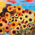 Diversi sono i soggetti presenti nelle sue opere che, come fuochi d’artificio, colpiscono lo sguardo: possiamo camminare in un campo di girasoli, in un pomeriggio di mezza estate, così come possiamo essere travolti dalle onde azzurre e tumultuose di un mare tempestoso, cercando di raggiungere un faro lontano.