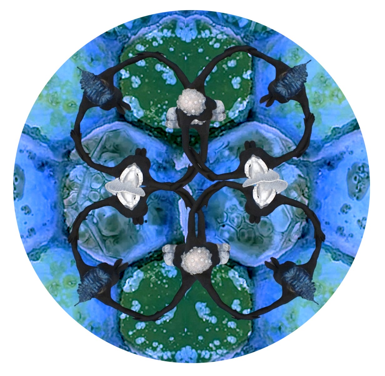 L’installazione di Katja Loher mira a svelare, attraverso un’esperienza multisensoriale, lo splendore e la complessità di forme di vita marine invisibili ai nostri occhi. L’opera offre l’esperienza di un viaggio in un mondo sottomarino minacciato, alla scoperta della bellezza e dell’importanza fondamentale del plancton, la galassia di microorganismi animali e vegetali che nella sua lenta deriva sostiene gli ecosistemi oceanici, fungendo da base della catena alimentare e producendo una quantità di ossigeno simile a quella di tutte le foreste del mondo. L’installazione è costituita da cinque “video-planets”, sfere sospese alle capriate della sala, sulle quali vengono proiettati video che offrono ai nostri occhi un’apparente visione al microscopio del plancton. Il movimento collettivo e ritmico del plancton è ricreato dalla danza di performers che assumono le sembianze di creature infinitamente piccole, in un gioco multicolore di prospettiva e scala. Sul pavimento della sala, la proiezione di un video fa affondare i nostri occhi in uno specchio d’acqua, alle cui sponde possiamo affacciarci per scoprire la vita che pulsa al suo interno. L’installazione è completata da una colonna sonora composta da JP Beltran. In mostra anche una video scultura di Loher: la forma di una bolla d’aria affiorante in superficie, realizzata in vetro soffiato, che ospita un video dove performers “miniaturizzati” danzano, mimando ancora una volta le fluttuazioni del plancton. Nel corso dell’inaugurazione, una performance della danzatrice svizzera Francine Hönner farà muovere uno dei microrganismi del plancton tra i visitatori.