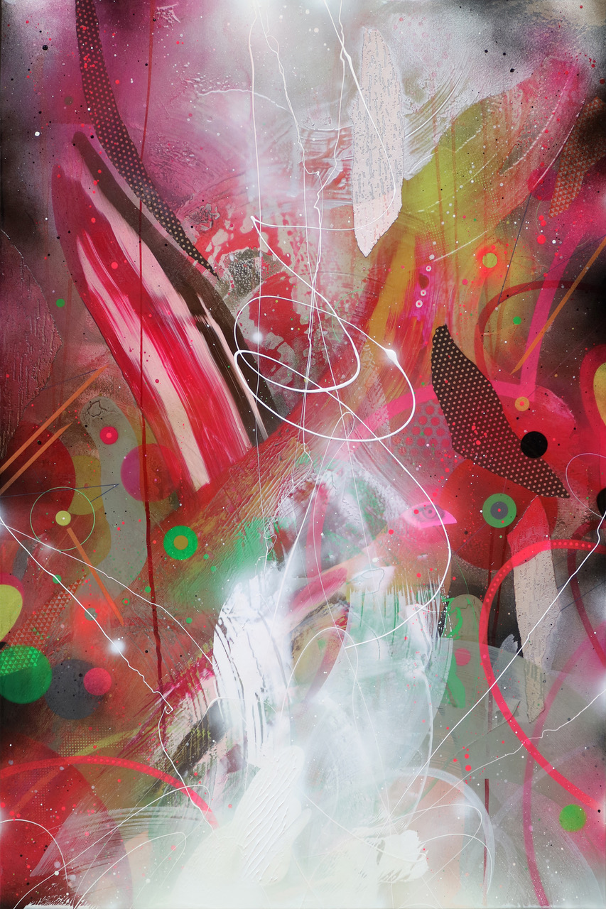 “All’interno delle opere di KayOne ritroviamo quel sapore stradale, urbano e underground che tanto ha caratterizzato la sua vita, tutti elementi che l’artista ha saputo trasportare su tela, cogliendo le emozioni e il vissuto dei muri di periferia” – afferma il curatore della mostra Alessandro Paolo Mantovani – “Nelle sue opere, caratterizzate da piacevoli e audaci accostamenti di colori, caos energetico di linee e forme che richiamano al contempo le arterie urbane e gli anelli dei pianeti, percorriamo tunnel scuri e buchi neri, galassie immaginarie create a colpi di spray, ritrovando questo percorso in lavori dal grosso impatto visivo e dalla forte carica emozionale. Pennellate imperiose, esplosioni di colore, opere polimateriche con armonie di colori dall’equilibrio perfetto”.