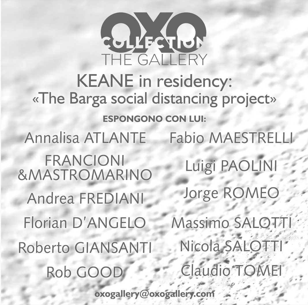 Dopo l'avvio di ''The Barga social distancing project” da parte di KEANE nel maggio scorso e dopo il successo di #ARTCONNECTION, la lotteria di beneficenza di oxogallery per sostenere il Licei Artistici Don Lazzeri - Stagi e Stagio Stagi di Pietrasanta e Piaggia di Viareggio, che hanno patrocinato l'iniziativa e che ci permetterà di donare loro attrezzature per l'alfabetizzazione digitale, dal 16 luglio p.v. prenderà avvio un altro importante momento del nostro programma. La Residenza di KEANE ospiterà, infatti, 12 artisti, alcuni già conosciuti da oxogallery come Andrea Frediani, Roberto Giansanti, Fabio Maestrelli, Luigi Paolini, Jorge Romeo, Nicola Salotti, Massimo Salotti e Claudio Tomei e altri che espongono per la prima volta a Barga, come Annalisa Atlante, Florian D'Angelo e Francioni & Mastromarino.