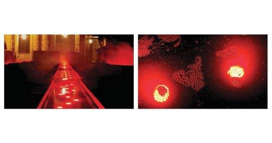 Il punto di partenza di Keiko Goto sono delle istallazioni luminose sparse in aree diverse della città, dove il gioco tra fisicità dell’opera dell’artista e scenario in cui è calata (pensata?) è forse più importante dell’atto creativo in sé. Il risultato finale gioca sul rapporto tra scena e rappresentazione, intesa quest’ultima come azione scenica, in cui il “fruitore” (termine horribilis) è calato, ha una sua dimensione, una sua presenza. Ecco, Keiko si mette proprio da questa parte e in questa prospettiva. Non documenta, non analizza con distacco, non usa il suo mezzo in modo “anonimo” o chirurgico. Si cala nello scenario, non perde nulla della “rappresentazione”, ne evidenzia “parti” o scorci, ne esalta gli aspetti di fascinazione e partecipazione, ci coinvolge nella sua lettura dell’evento, tutta basata sui colori e la luce, anzi la “luminosità”, che è di più della luce, è l’effetto sensibile della luce, la sua interpretazione, la sua introiezione.