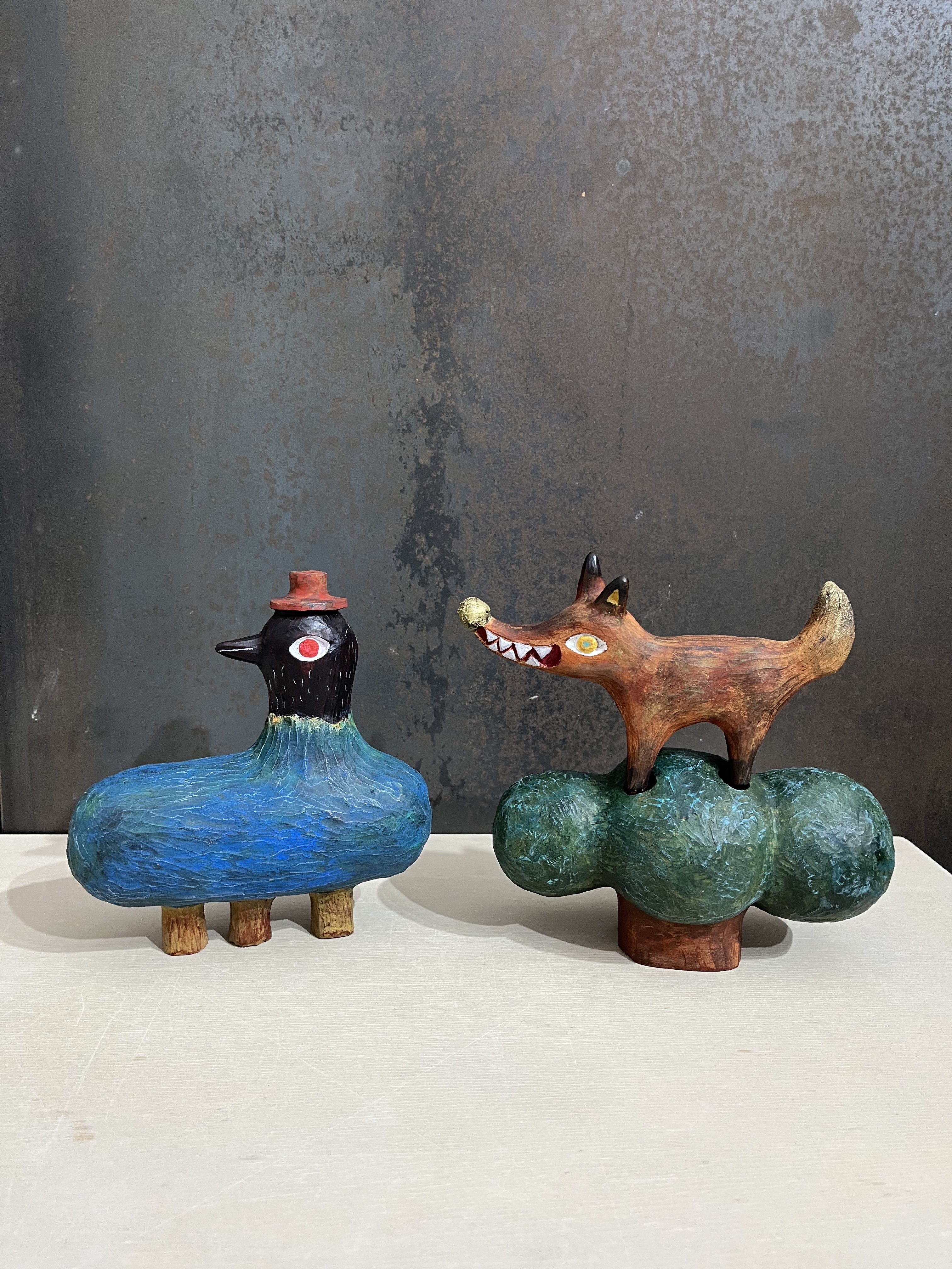 L’artista Taiwanese Ginar Liu, che presenta “Corvo Nero E La Lupa” scrive, “sono stato attratto dalla Lupa il primo giorno che sono arrivato a Roma, ma non capivo il significato della Lupa. Mi sembrava un animale che assomigliava a un lupo o a una volpe. Poi ho scoperto che la Lupa aveva il significato ed è il simbolo della fondazione di Roma. Ho visto molti corvi a Roma. Lo trovo molto interessante. In alcuni luoghi dell'Oriente, i corvi sono un simbolo di fortuna e portano fortuna. Ora l'Europa è in guerra e Taiwan sta affrontando da tempo la minaccia della Cina. Durante il mese ci sono state diverse proteste a Taiwan, che mi hanno fatto sentire molto complicato durante il mio soggiorno a Roma. Tutti si aspettano che il mondo sia migliore, ma pensano stupidamente che non fare nulla lo renderà migliore. Spero che un giorno il corvo porti buone notizie."