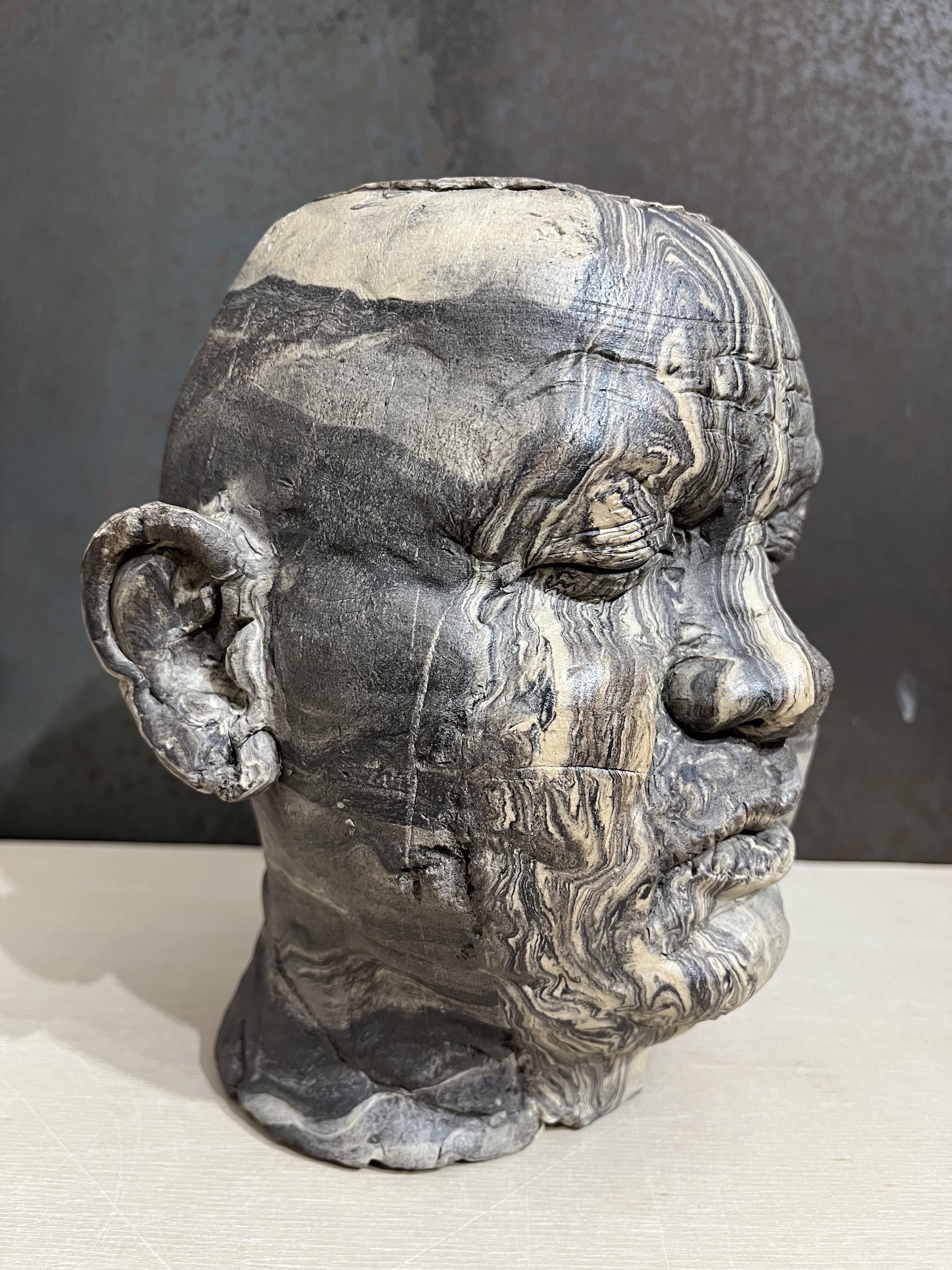 Nel “Monolite Dormiente”, l’artista americano Kelsey descrive cosi il suo lavoro: “questo nuovo lavoro che esplora la materialità e la longevità dell'oggetto scultoreo figurativo in relazione all'idea di monumento. Sebbene queste opere non siano in scala monumentale, sono un'estensione della mia serie di monoliti, in cui le superfici ceramiche sono destinate a emulare oggetti costituiti da marmo, granito e calcare calcificato. Durante il periodo trascorso al CRETA Roma, tuttavia, mi sono concentrato sull'utilizzo di una varietà di corpi di argilla nativa, sulla marmorizzazione dell'argilla e sull'intarsio. Il tentativo è stato quello di ottenere una superficie simile a quella delle sculture in marmo e dei pavimenti delle cattedrali di Roma. Per me queste forme sono familiari, ma le superfici offrono un potenziale per una nuova ed eccitante tangente di ricerca artistica. Gli oggetti raccontano una storia attraverso la superficie, quando si trasformano da materiale grezzo in raffinati oggetti scultorei. Tuttavia, la storia di quell'oggetto, che sopravvive a noi, può essere raccontata dalle prove di usura, che vengono portate alla luce e riparate come un oggetto di meraviglia.”