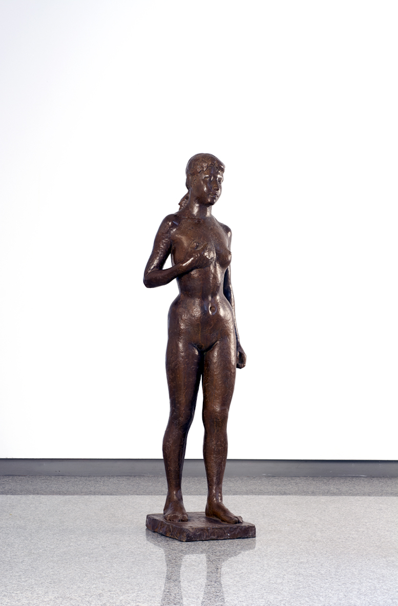 Nella prima sala al primo piano il percorso espositivo inizia con il periodo accademico della scultura figurativa francese all’Università d’Arte di Tokyo. Segue quindi quello sempre figurativo con il maestro Marino Marini all’Accademia di Brera a Milano, dove compaiono i primi bassorilievi in legno, in gesso e in bronzo intitolati MU (infinito, vuoto).