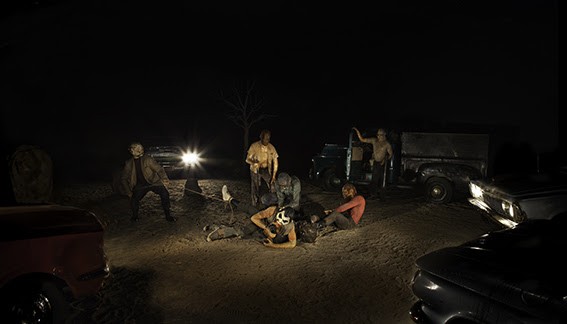 Five Car Stud è stata creata da Edward Kienholz tra il 1969 e il 1972 ed è stata esposta per la prima volta a Kassel in occasione di documenta 5, curata da Harald Szeemann. L’opera, che riproduce in dimensioni reali una scena di violenza razziale, è considerata una delle più significative dell’artista americano. Nonostante il clamore e l’attenzione della critica suscitati fin dalla sua prima esposizione, Five Car Stud è rimasta non visibile nel deposito di un collezionista giapponese per quasi quarant’anni. Ora parte della Collezione Prada, riappare per la prima volta in Italia in questa mostra.