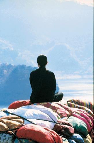 L’esposizione di Kimsooja al PAC include, oltre a diverse proiezioni video, la grande installazione A Laundry Woman (Lavandaia), 2000 nella quale tessuti tradizionali coreani, grandi e coloratissimi, fitti di ricami dai motivi simbolici, sono fissati, come panni messi ad asciugare, su sottili fili tesi fra le pareti. Il visitatore è invitato ad aggirarsi fra i tessuti, che ondeggiano lievemente al passaggio, e a sperimentarne, da vicino e tangibilmente, la bellezza, la delicatezza e la grande energia cromatica. Percepiti nell’installazione dell’artista soprattutto come elementi estetici e simbolici, in Corea questi tessuti hanno una precisa funzione utilitaria: sono usati per il letto - una coperta per riposare, dormire, amare - ma anche per accogliere i defunti.