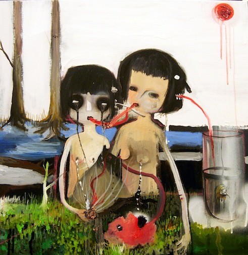 Un altro elemento di condivisione è l’ambientazione campestre e domestica entro cui si sviluppano bizzarre narrazioni, al limite del surreale.Si tratta di una scelta supportata da una grammatica pittorica dominata dai toni lievi, quasi piani, che ci introducono in una dimensione sospesa, priva di riferimenti all’odierna cultura urbana, che oscilla tra il fiabesco e il naïve. Eppure, proprio tramite l’uso di figure retoriche come la metafora e l’allegoria, questi artisti introversi e introspettivi non hanno rinunciato a svolgere un ruolo critico nei confronti della società, indagando,senza tanto clamore, il disagio esistenziale e sociale del nostro tempo.