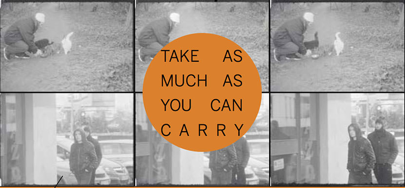 Take as Much as You Can Carry è un progetto site specific che ruota attorno all’omonimo film girato in 16 mm da Kipras Dubauskas tra la Polonia e la Lituania. Perno centrale dell’esposizione è un grande tubo, generalmente in uso per le condutture dell’acqua,che lega l’esterno e l’interno della galleria. L’artista unisce idealmente due universi distanti: “Nella mia pratica artistica scelgo spesso aree suburbane. Per me questi spazi e i relativi abitanti conservano un proprio tempo e un proprio ordine, cercando di far emergere importanti questioni sociali non ancora risolte”.