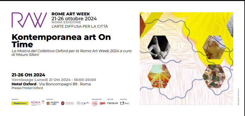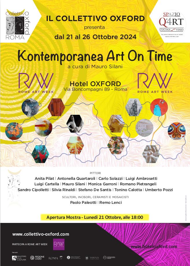 Dal 21 al 26 ottobre 2024, nell'ambito della Roma Art Week, il Collettivo Oxford presenta la mostra d’arte contemporanea “Kontemporanea Art On Time”, a cura di Mauro Silani, presso lo spazio espositivo Q’4RT dell’Hotel Oxford, situato in via Boncompagni 89, Roma. L’inaugurazione ufficiale si terrà lunedì 21 ottobre, alle ore 18:00.