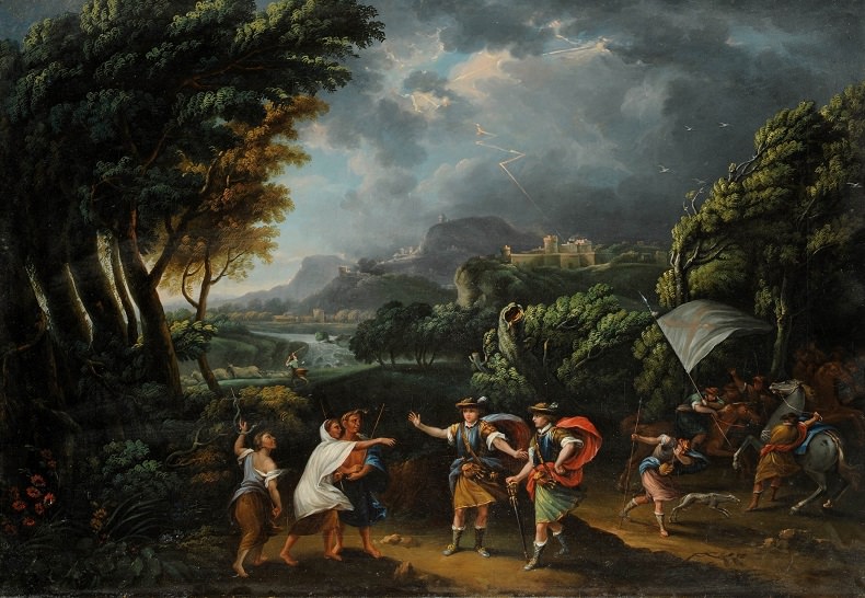 E’ il caso di Pietro Rotari ( Verona, 1707-San Pietroburgo, 1762), di cui si espone un importante esemplare di soggetto vetero-testamentario ( Ester e Assuero) che prelude agli incarichi presso le corti di Vienna, Dresda e San Pietroburgo, oltre a Francesco Zuccarelli ( Pitigliano, 1702-Venezia, 1788 ), vero e proprio nodo semantico della mostra in virtù di una dimensione internazionale raggiunta da pochi altri.