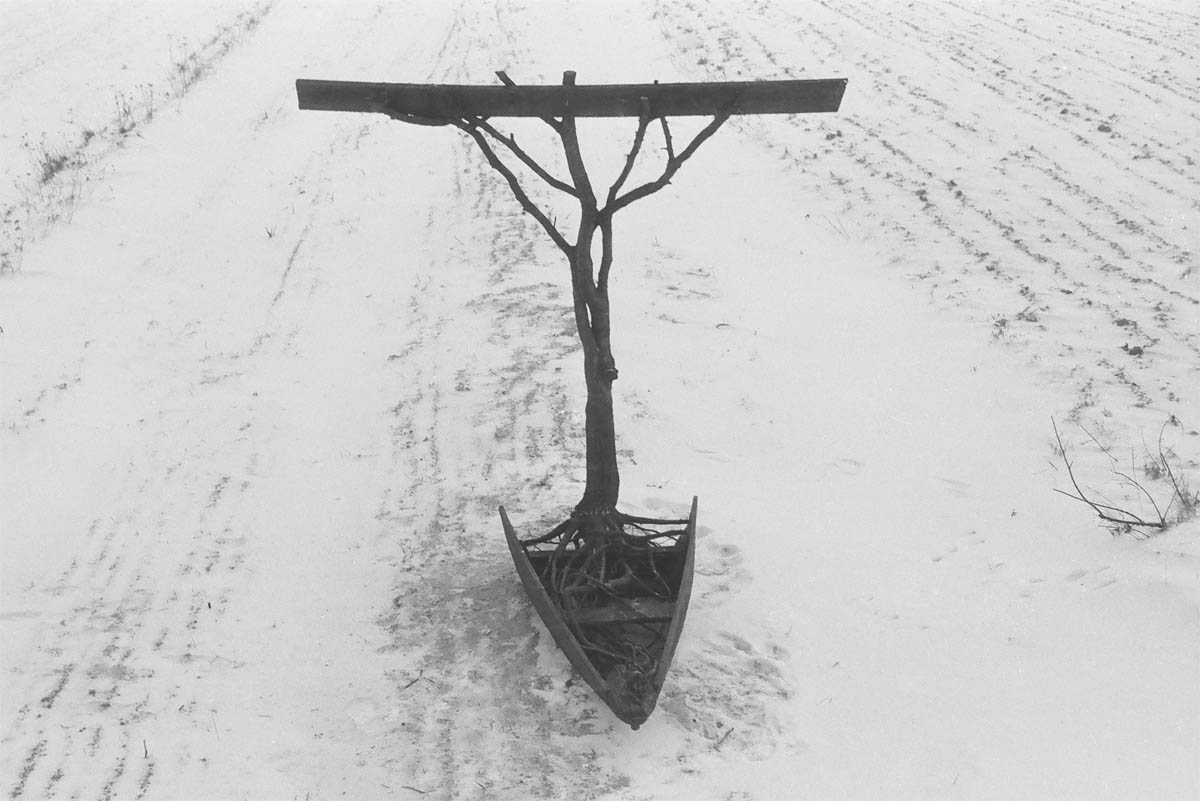 La mostra Simboli della vita dopo la morte. La scultura commemorativa di Krzysztof M. Bednarski, che si compone di fotografie di documentazione delle opere funebri e di alcuni loro bozzetti, si apre con le immagini di Thanatos polacco (1984), scultura dedicata ai membri, all’epoca scomparsi, della compagnia del Teatro Laboratorio di Jerzy Grotowski. La barca dimezzata con un albero incenerito è un simbolo del percorso, del passaggio verso l’aldilà. L'opera è stata realizzata in un momento in cui l'artista non riusciva ancora ad assumersi il compito di creare tombe, nonostante ricevesse numerose richieste e proposte. Solo più tardi Bednarski si rese conto che la cosa migliore che poteva fare per un amico defunto era la realizzazione di una tomba, attraverso cui presentarne l’individualità.