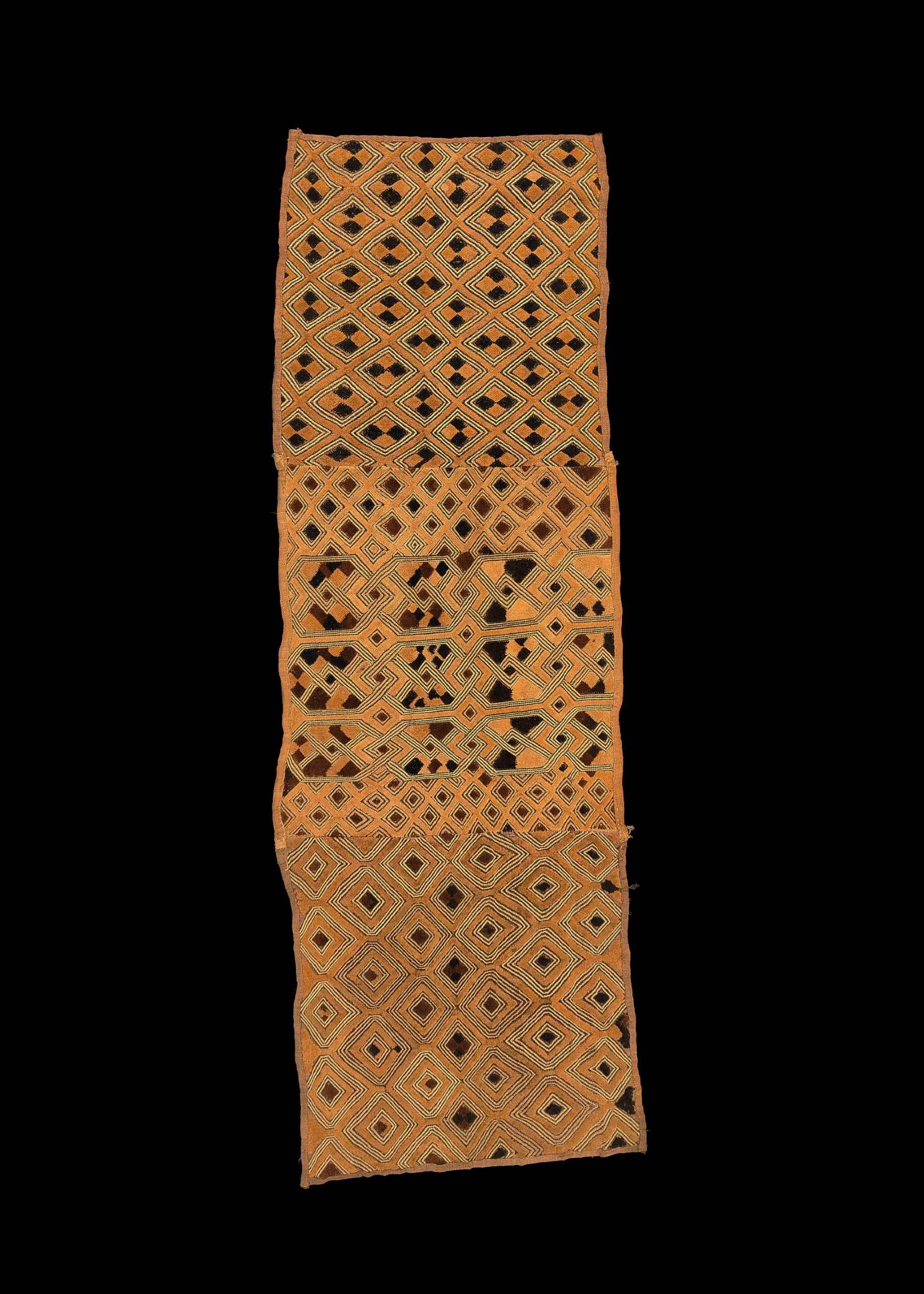 In mostra le due maggiori produzioni tessili dell’antico regno africano, entrambe in rafia: gli ntshak, abiti per le spose dei re destinati alle cerimonie più importanti, e i musese, noti agli europei fin dal 1500 per la finezza del loro ricamo. Assieme ai tessuti, antiche sculture centroafricane.