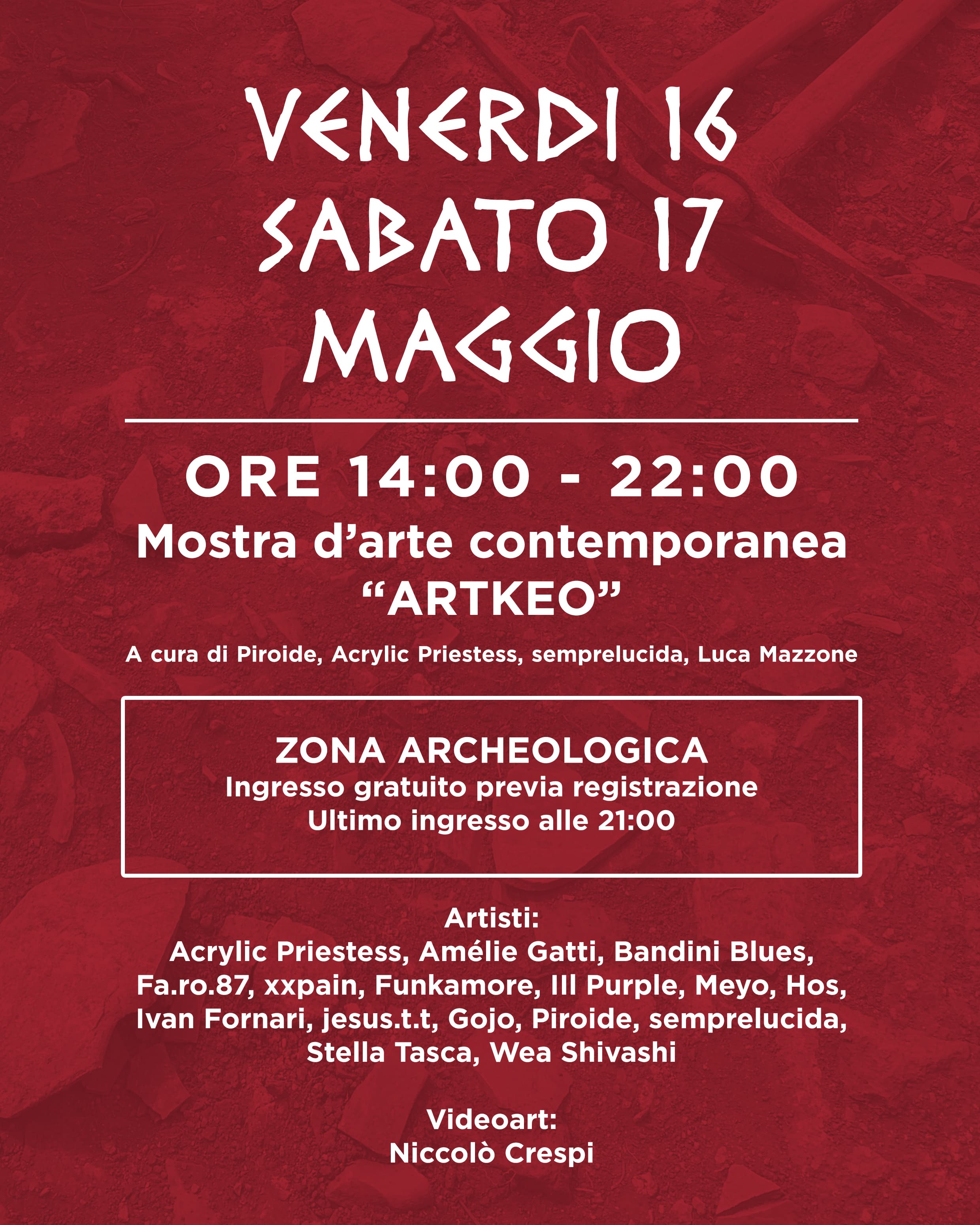 Dalla collaborazione tra l’École française de Rome, AcrylicPriestess, Luca Mazzone, Piroide e Semprelucida nasce Artkeo, una mostra collettiva che mette in dialogo archeologia e arte contemporanea,