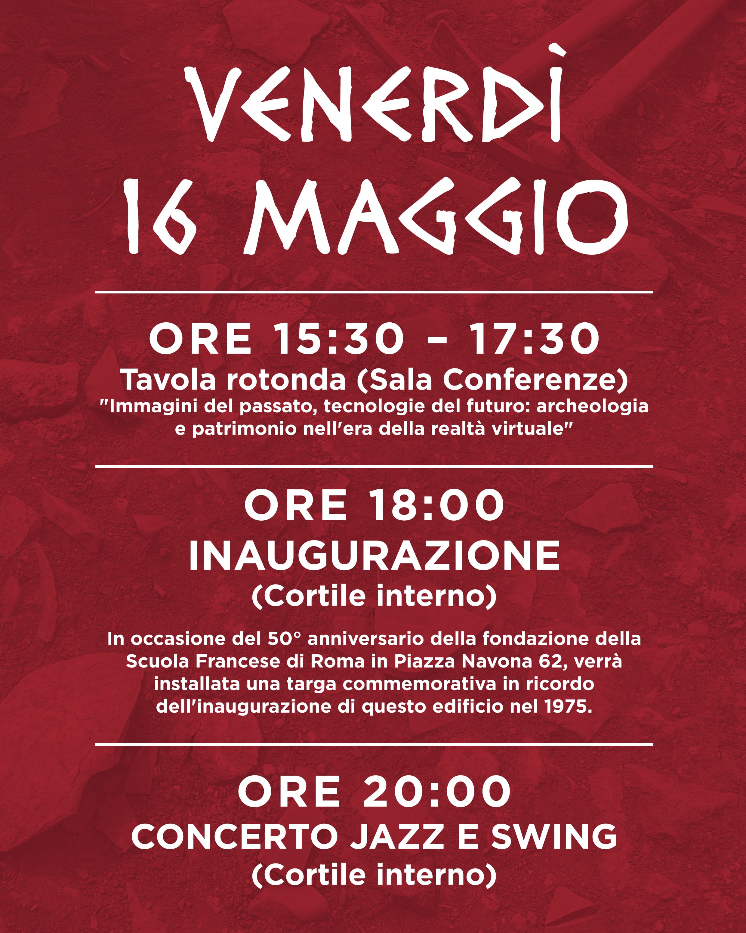Specificamente ideata per l'area archeologica dell'edificio di Piazza Navona, la mostra s’inserisce nell’ambito di NAVONA50, evento organizzato dall’École per celebrare il 50° anniversario dell'inaugurazione della sua sede in Piazza Navona 62 e in occasione dei 150 anni dell’istituzione.