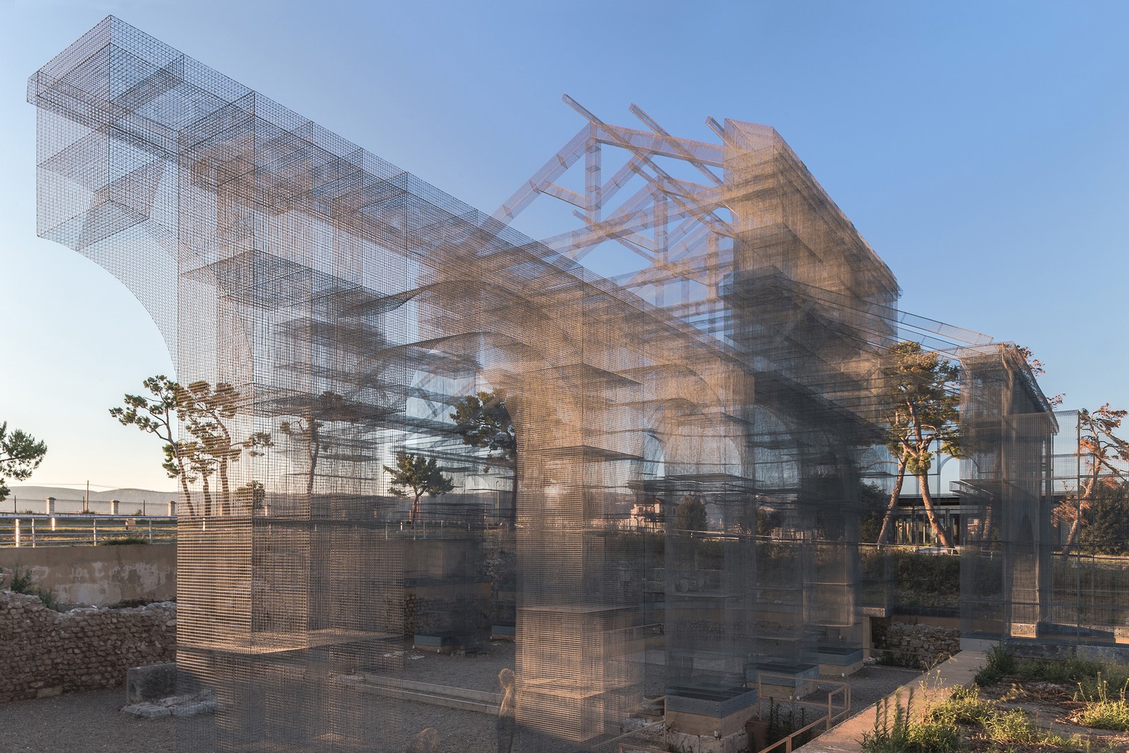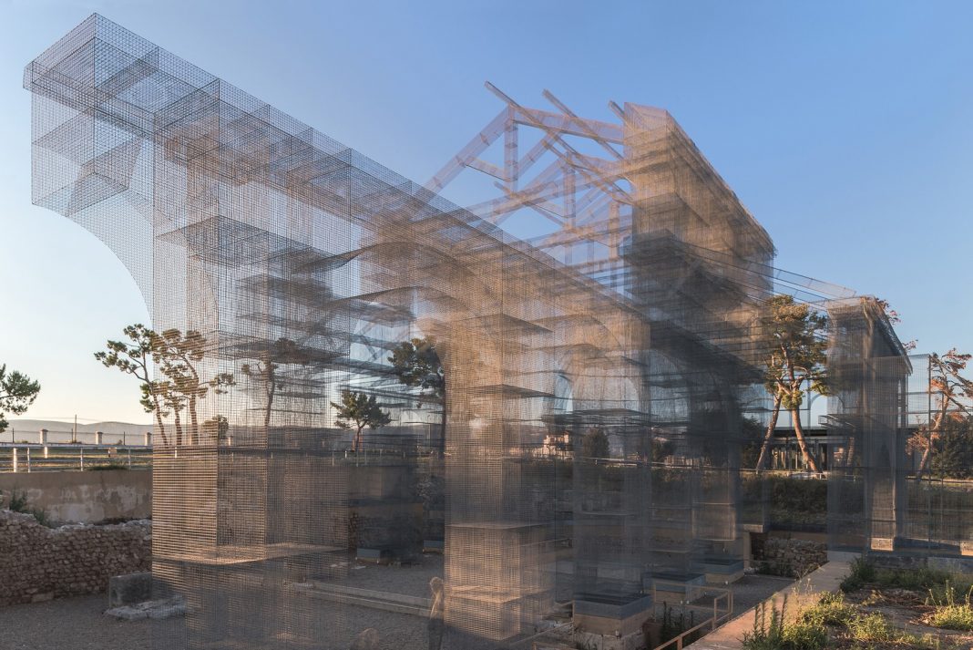 Con “La Basilica di Siponto di Edoardo Tresoldi. Un racconto tra Rovine, Paesaggio e Luce”, l’autore si cimenta per la prima volta nella restituzione al pubblico di un’esperienza importante, ovvero quella della realizzazione di un’installazione permanente in rete metallica dedicata alla Basilica paleocristiana di Santa Maria, voluta dal Ministero per i beni e le attività culturali per il Parco Archeologico “Le Basiliche” di Siponto. Perfettamente integrata nel contesto pugliese, la scultura trasparente si configura come un manufatto contemporaneo capace di aprire nuovi scenari per la conservazione e valorizzazione del patrimonio storico e archeologico, in cui la luce gioca un ruolo determinante nel rapporto presenza-assenza.