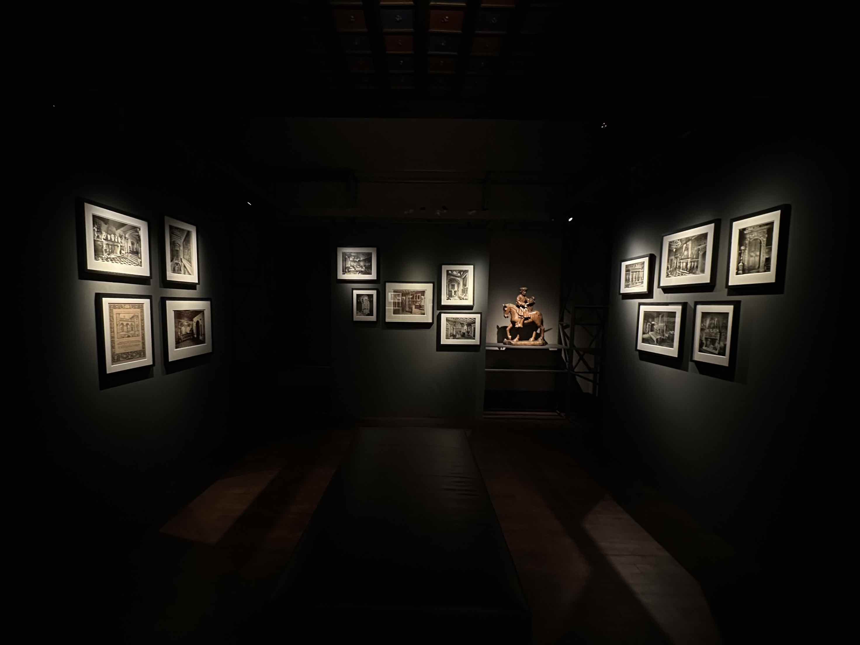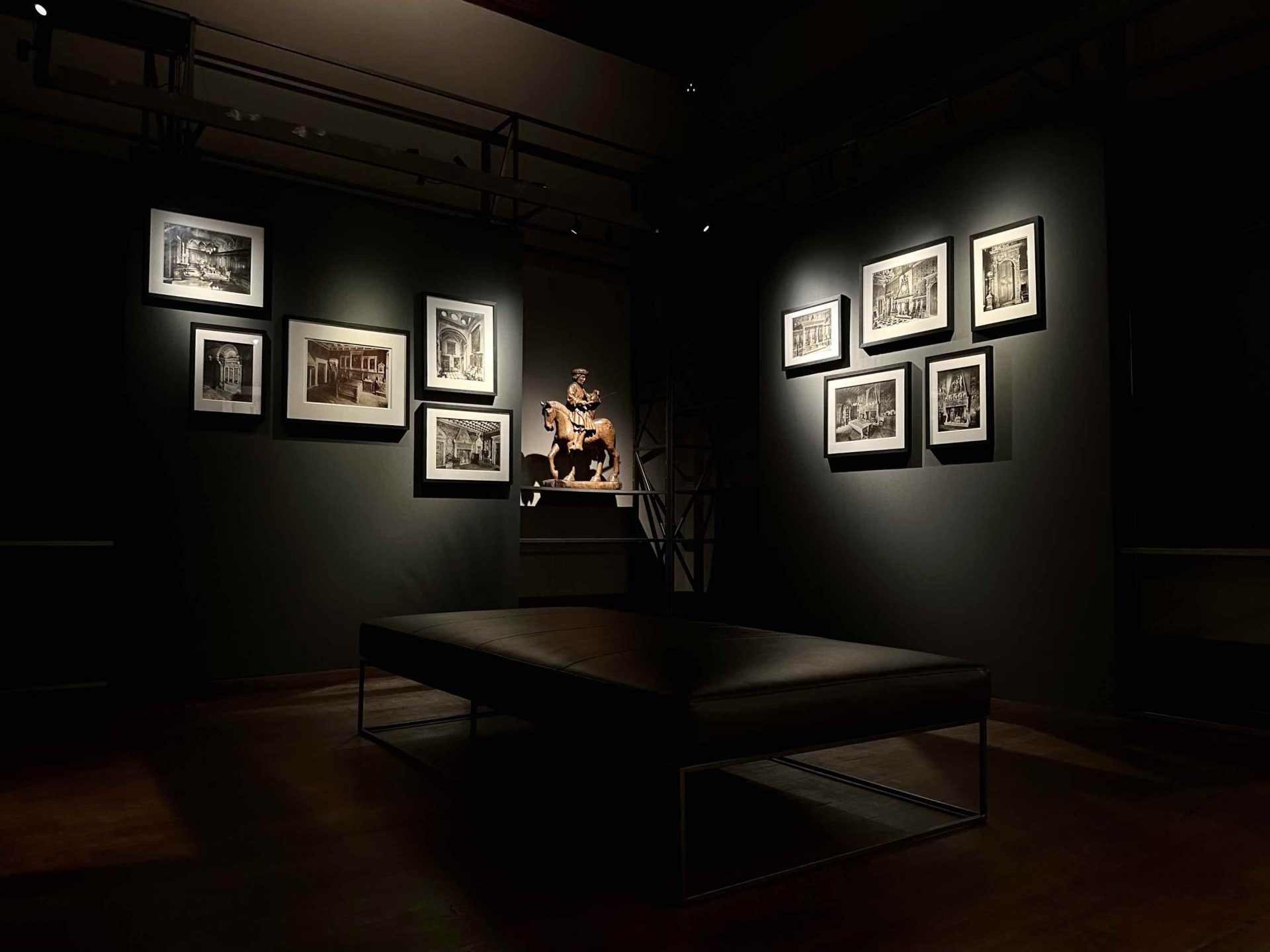 Alla selezione di fotografie, principalmente albumine e gelatine al bromuro d’argento, si aggiunge la presenza inedita della scultura lignea rappresentante San Martino a cavallo, già documentata nelle fotografie dell’epoca disposta su un cassone accanto all’imponente camino di Camera Bevilacqua: la sua presenza esemplifica l’evoluzione degli ambienti durante il passaggio da dimora privata a Casa Museo.