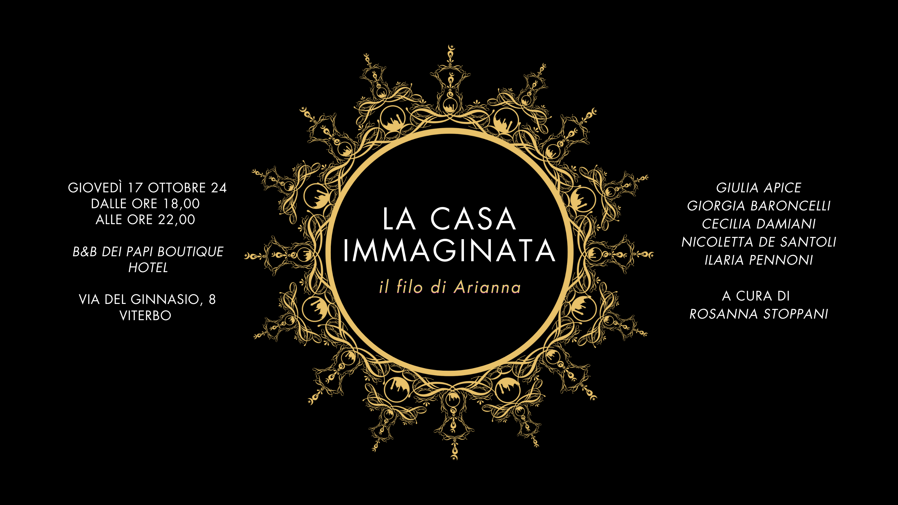 Confermando la vocazione degli spazi del Boutique Hotel dei Papi, particolarmente attenta a indagare il multiforme mondo femminile, Rosanna Stoppani ha invitato Giulia Apice, Giorgia Baroncelli, Cecilia Damiani, Nicoletta De Santoli e Ilaria Pennoni.