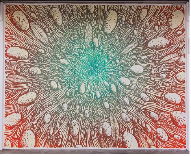 Progetto di artisti della street art all’interno di un capannone industriale, inspirato dagli affreschi nelle chiese del trecento, riadattato ai linguaggi contemporanei.