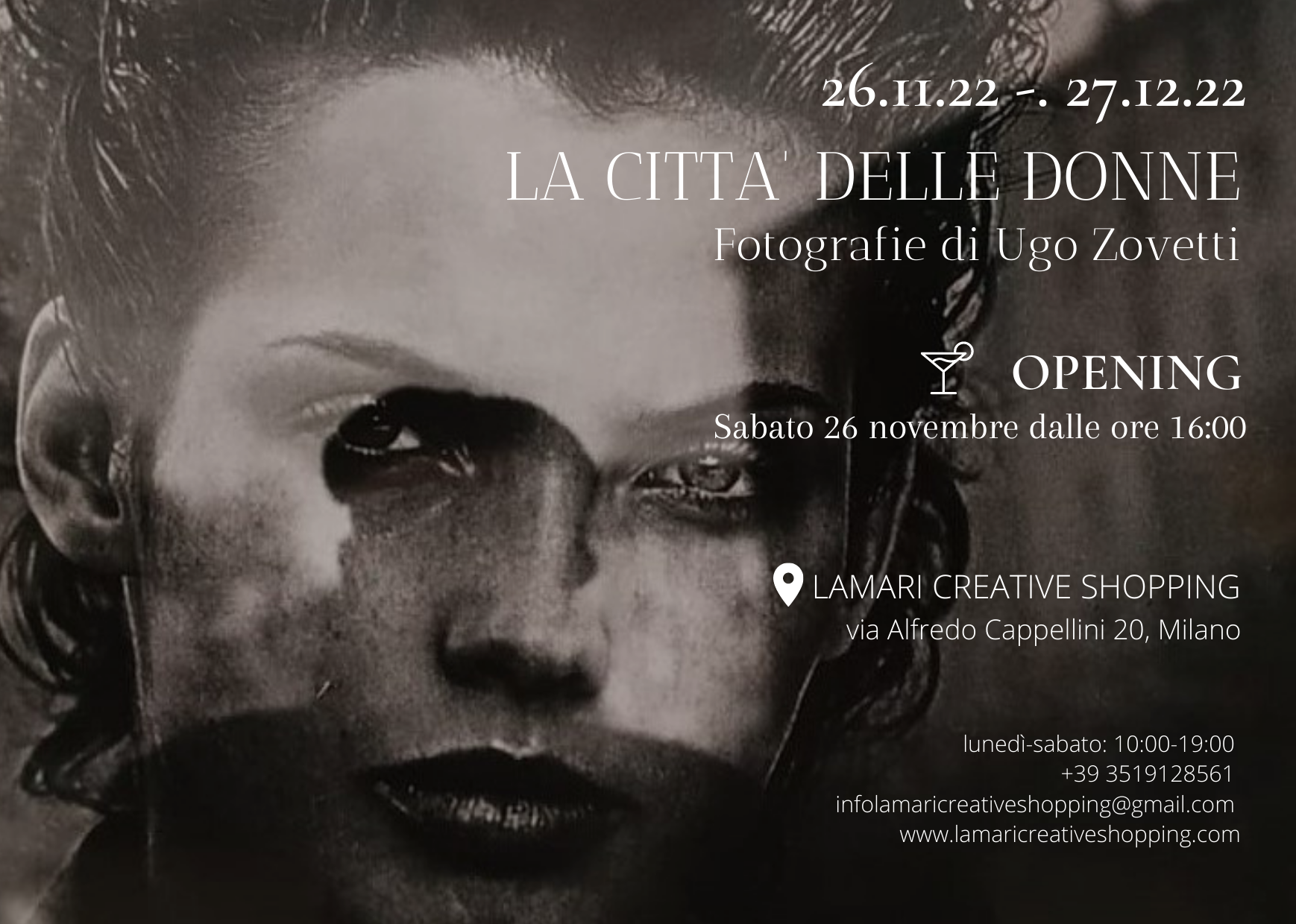 Inaugura sabato 26 novembre presso il concept store LaMari Creative Shopping, la mostra “La città delle donne – fotografie di Ugo Zovetti”: in esposizione circa 30 opere fotografiche in bianco e nero, alcuni degli ultimi lavori realizzati dall’artista Ugo Zovetti.