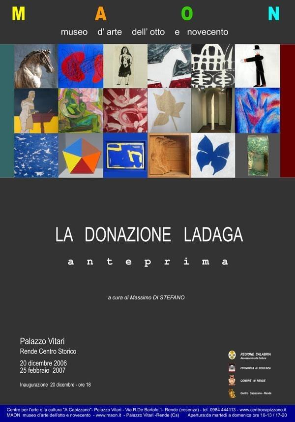 “Ho sempre pensato – ha scritto Ladaga – che queste opere, assieme ai molti volumi che riguardano la storia dell’arte e ai numerosi cataloghi di mostre, era opportuno metterle a disposizione soprattutto dei giovani studiosi. Così è nata la decisione relativa alla loro donazione ad una istituzione. Il MAON di Rende è la sola struttura che in Provincia di Cosenza, senza essere governativa, ha carattere pubblico. Ha in palazzo Vitari una sede prestigiosa ed una direzione solida e competente con la quale ho avuto già occasione di collaborare in occasione di una mostra. In direzione del MAON di Rende mi ha anche orientato la stima e l’affetto che ho sempre portato nei confronti del compagno on. Cecchino Principe.”