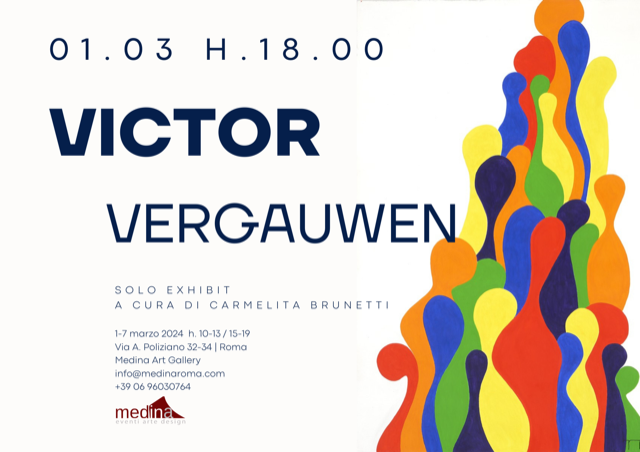 Dal 1 marzo al 7 marzo 2024 Medina Art Gallery presenta solo exhibit, di Victor Vergauwen a cura di Carmelita Brunetti presso la galleria di Via Angelo Poliziano 32-34