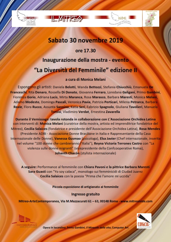 Seconda edizione della mostra/evento “La Diversità del Femminile”. Una mostra collettiva dedicata alla donna ed al “Multiverso femminile” caratterizzato da una meravigliosa diversità che ha come principi di fondo l’accoglienza, la valorizzazione dell’altro, la collaborazione,l’armonia delle polarità