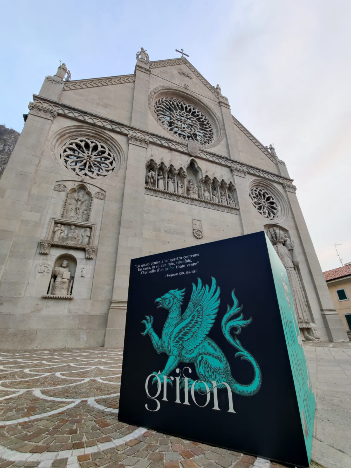 “La Divina Gemona: 700 passi con Dante”attraversa il centro storico e ha tre tappe principali - Santa Maria delle Grazie, Duomo, Castello - uguali per numero alle tre Cantiche dantesche, un’ideale vicinanza all’opera: sono entrambi viaggi ideali verso la salvezza. Nella Commedia la redenzione spirituale di Dante si snoda tra Inferno, Purgatorio e Paradiso; nel percorso gemonese si va dalla distruzione compiuta dal terremoto alla rinascita della città, che ha trovato nella ricostruzione la propria dimensione di salvezza. Le assonanze tra l’opera di Dante con la storia di Gemona degli ultimi 50 anni - concetto nuovo ed originale! - sono state rese in maniera coinvolgente con installazioni diffuse e immagini create ad hoc dall’illustratore friulano di nascita e internazionale di fama e di formazione, Emanuele Barison, con le letture dell’attore, autore e regista teatrale Massimo Somaglino. Caffécorretto ha ideato e curato gli allestimenti diffusi nella città.