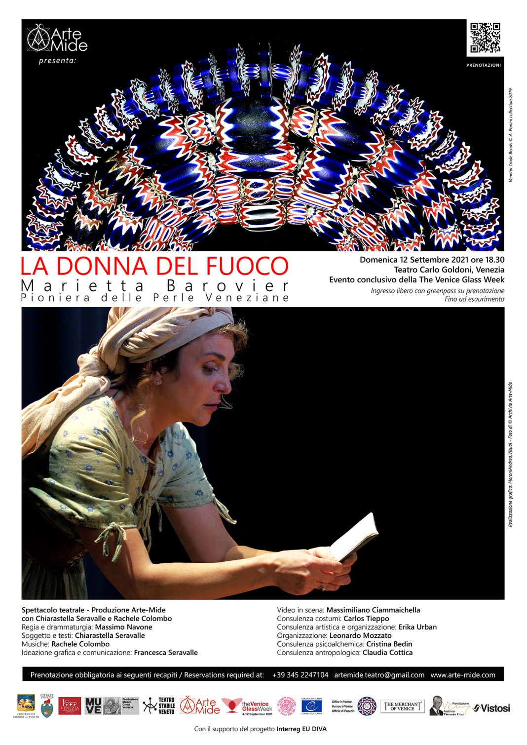 Lo spettacolo teatrale è parte di un ciclo di eventi, prodotti dall’Associazione Culturale Arte-Mide su Marietta Barovier, ambasciatrice della cultura veneziana all'estero, prima imprenditrice ad aprire una fornace nel XV°, dedicando la vita alle perle di vetro, le famose "perle Rosetta". Lo spettacolo teatrale "La donna del fuoco, Marietta Barovier, pioniera delle perle veneziane" nato da una ricerca dell'attrice e autrice dei testi Chiarastella Seravalle, firmato dalla regia di Massimo Navone sarà presentato al Teatro Goldoni il giorno 12 settembre alle ore 18.30 a conclusione della The Venice Glass Week. Di questo spettacolo è stato fatto un lungometraggio omonimo con interventi morphing di Andrea Moroni, con le riprese della Ginko film e con la partecipazione dello Studio El Cocal. Il trailer del film sarà presentato il 2 settembre alle ore 16.00 in anteprima nazionale alla 78° Mostra del Cinema di Venezia, mentre la versione intera sottotitolata in 4 lingue sarà mostrata in occasione della Giornata Europea delle Lingue, il 26 settembre alle 18 su YouCafoscari. Arte-Mide con il progetto sulla storia Marietta Barovier è stata inserita nel dossier di candidatura tra le figure che svolgono un’azione di sostegno della candidatura delle perle a patrimonio intangibile UNESCO, contribuendo a sensibilizzare e diffondere la “trasmissione del saper fare” e la valorizzazione del bene intangibile attraverso il teatro e il cinema.