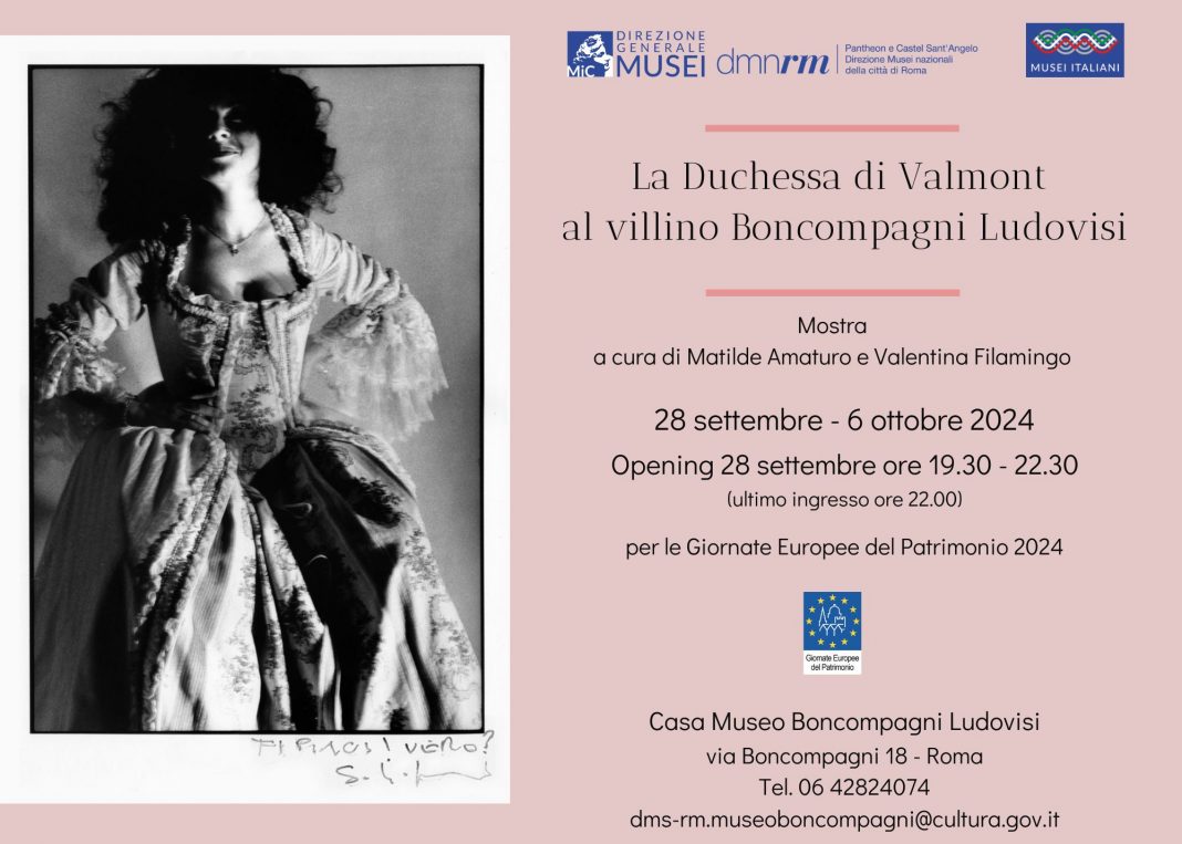 In occasione delle Giornate Europee del Patrimonio 2024 dal tema “Il Patrimonio in cammino” la Casa Museo Boncompagni Ludovisi apre al pubblico la mostra La Duchessa di Valmont al villino Boncompagni Ludovisi, a cura di Matilde Amaturo e Valentina Filamingo.