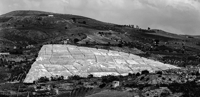 Alberto Burri, chiamato a realizzare un intervento per la ricostruzione del paese distrutto dal terremoto nella Valle del Belice del 1968, decide di intervenire sulle macerie della città di Gibellina, creando l’opera di Land Art più grande al mondo. Le ricopre di un sudario bianco, di un’enorme gettata di cemento che ingloba i resti e riveste, in parte ricalcandola, la planimetria della vecchia Gibellina.