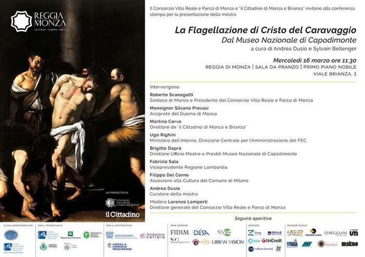 Torna Caravaggio alla Reggia di Monza. Dal 16 marzo al 17 aprile è esposta al pubblico la Flagellazione di Cristo, uno degli esiti più importanti della produzione napoletana del Caravaggio, proveniente dal Museo di Capodimonte dove dimora dal 1972. Appartenente al patrimonio del Fondo degli Edifici di Culto, l’olio su tela, che misura 286 × 213 cm, è inscritto nel progetto inaugurato lo scorso anno con il San Francesco in meditazione, volto a mostrare gratuitamente al pubblico della Reggia un’opera di elevato pregio ogni anno nel periodo pasquale