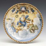 In mostra questa vocazione a fare della maiolica un prodotto artistico di prima qualità è ben dimostrata da una serie di preziosi manufatti destinati ad importanti personalità dello scenario politico e culturale internazionale: è il caso dei quattro piatti con paesaggi arcadici che introducono episodi vetero e neo testamentari collocati sullo sfondo dipinti da Francesco Antonio Saverio Grue e racchiusi, al pari dei dipinti su tela, entro delle raffinate cornici settecentesche in legno intagliato e dorato che ne dichiarano la provenienza dalle collezioni reali sabaude, appartennero infatti ad un sofisticato estimatore dell’arte rococò come Umberto II. Anche la serie di mirabili piattini dipinti con scene pastorali attribuiti ad Aurelio Anselmo ed al fratello Liborio Grue che recano l’arme della famiglia Testa- Piccolomini o i grandi piatti con l’insegna araldica del cardinale Ruffo mostrano come nel Settecento i più importanti nomi dell’aristocrazia si avvalessero per l’arredo delle loro abitazioni di quanto dipinto a Castelli.
