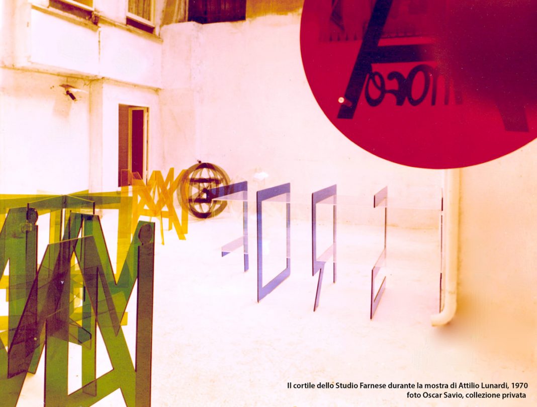 La galleria Studio Farnese si affaccia al panorama artistico romano per la prima volta nel febbraio del 1969. Lo spazio, fondato dall’intraprendente Maria Di Lella Alfani (1917-2006), era dinamico ed eterogeneo e si apriva su un cortile che spesso veniva utilizzato come prolungamento della superficie espositiva.