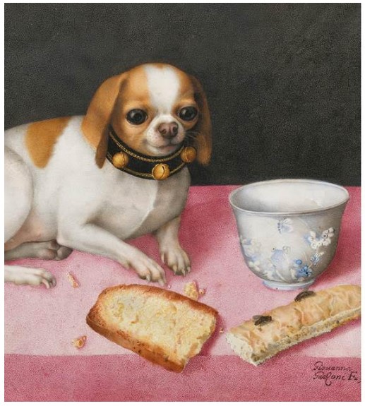 Protagonista riconosciuta nell’evoluzione dell’illustrazione scientifica, Giovanna Garzoni è meno nota come illustratrice dell’immaginario geografico dell’epoca barocca. In composizioni armoniche e spesso di piccole dimensioni, la pittrice combinò infatti oggetti esotici e di provenienze diverse come porcellane cinesi, nautili del Pacifico, zucche e fiori messicani, piante sudamericane o cani da salotto inglesi, con il fine ultimo di stupire e divertire.