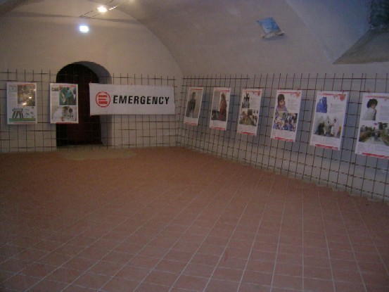 Nell’ambito della mostra, verranno proiettati presso la sala video di Casa Cavassa alcuni documentari prodotti dall’associazione Emergency: i filmati consentono di approfondire la conoscenza dell’associazione, del suo lavoro, delle vittime di guerra assistite negli ospedali costruiti nelle aree di intervento e delle persone che i volontari hanno incontrato sulla loro strada.