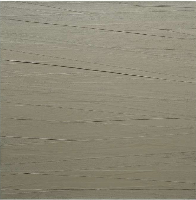 PAOLO COTANI (Roma 1940-2011) con le sue bende elastiche esprime l'idea dell'assenza di spazio pittorico tra i livelli di colore su una tela ribadendo l'azzeramento linguistico e degli strumenti tradizionali della pittura.