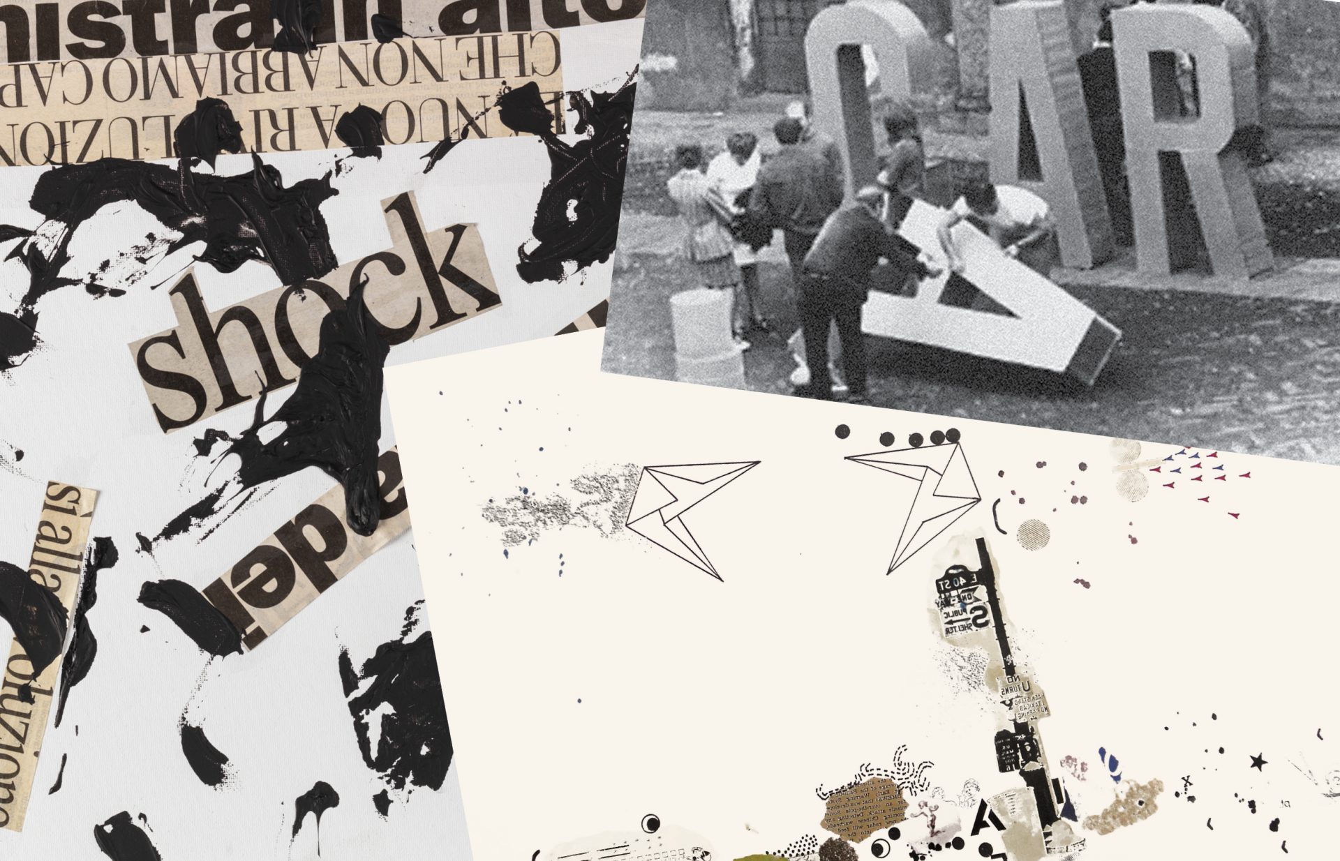 Con i futuristi, con dada, con Suicide di Aragon – che riduce la poesia ad alfabeto- e con il Lettrismo, la lettera diventa immagine, scheggia, dettaglio, corpo fisico, astrazione.