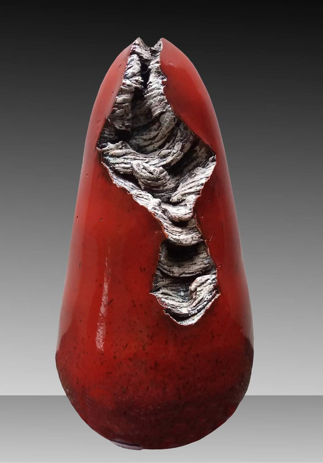Carlo Sipsz, annus natalis 1941, comincia presto a masticare arte. Nel 1957 frequenta l’Istituto Arte della Medaglia di Genova e ne esce incisore e cesellatore, imparando dai maestri rinascimentali a trattare metalli, legno, pietra grazie allo scultore Walter Klemmer e tra il 1966 e il 1970 si specializza in scultura all’Accademia Ligustica di Belle Arti. Ma nel frattempo, tra il ’60 e il ’63, fa esperienza di scenografia al Teatro Carlo Felice, metabolizzando probabilmente la forza cromatica di quel rosso turgido e potente, disseminato su arredi/poltrone/sipari, che caratterizzerà tanta parte delle sue opere successive. Poi, nel 1974, arriva ad Albisola e vi scopre la magìa dell’Arte del Gran Fuoco, difficile da governare ma proprio per questo stimolante, sulla scìa dei grandi maestri del ‘900 che fecero di Albisola la capitale mondiale della Ceramica, da Fontana a Jorn, da Sassu a Luzzati a Capogrossi.