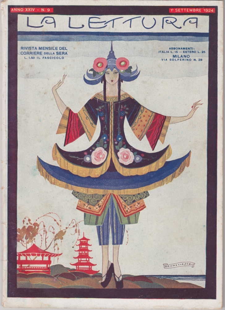 Anche un altro importante periodico si avvalse della collaborazione di Brunelleschi: è La Lettura, legato (allora come oggi) al Corriere della Sera. In mostra sono esposte numerose copertine. Dall’affascinante ritratto ‘in punta di penna’ del giugno 1926 alla ‘cineseria’ del settembre 1924, dalla maschera del febbraio 1920 al raffinato disegno arabescato del luglio 1923.