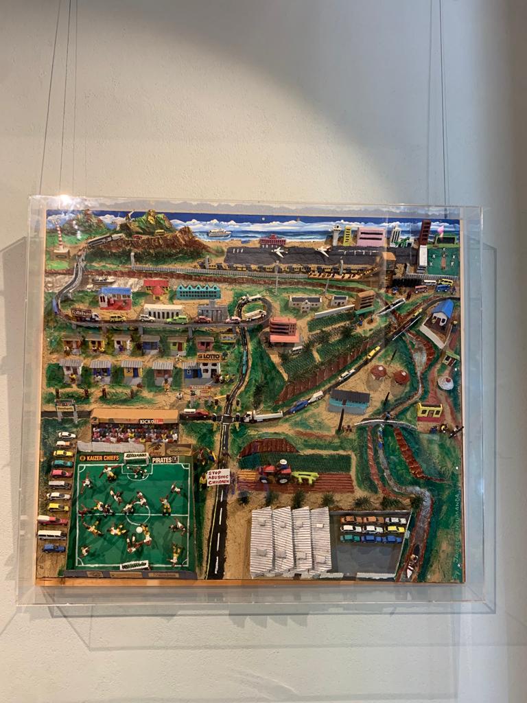 Nkumanda fin dall’età di 9 anni cominciò a lavorare con materiali di riciclo per poi approdare alla sua forma d’arte in 3D nei primi anni ‘90. Attraverso le sue opere descrive la vita quotidiana, i conflitti, i momenti di svago e vita sociale nelle township, i ghetti della periferia di Cradock, città sudafricana in cui è nato. Nonostante la povertà e i disagi, i protagonisti delle sue creazioni vivono una vita serena e dignitosa: lavorano, si riposano, giocano, cantano e ballano e forse sognano di poter vivere, un giorno, un'esistenza migliore. Paesaggi urbani che a prima vista possono sembrare teatrini o dei giochi infantili, realizzati con materiali di riciclo quali legno, sughero, metallo, sabbia, gomma, stagno, tagli di cartone e vecchie scarpe a pinne. Le scene, viste a volo d’uccello, risultano di una immobilità viva e frastornante, ma trasmettono a chi le guarda umanità ed umorismo: tra le opere presenti in mostra alcune hanno come soggetto gli sport, un mondo che ci è particolarmente familiare e che ci fa sentire ancora più nostro il mondo di Jackson Nkumanda. Nel 1993 ha avuto la sua prima mostra personale alla Galleria 709 a Città del Capo, e da allora il suo lavoro ha viaggiato in tutto il mondo.