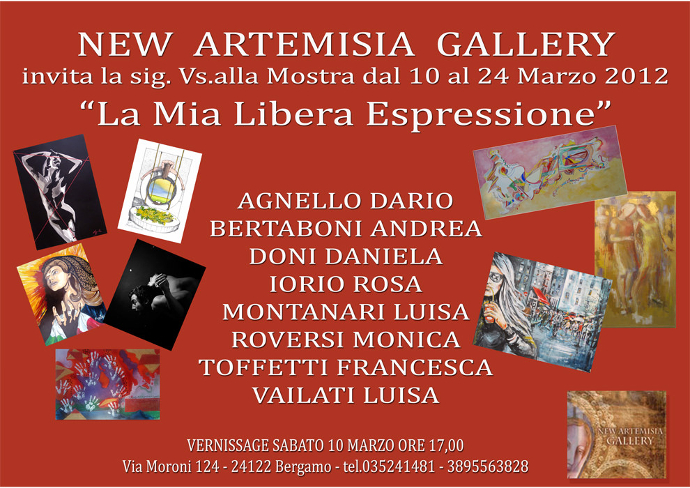 Come consuetudine nei mesi di febbraio e marzo la New Artemisia Gallery presenta alcuni artisti che avendo partecipato al concorso di pitturra Trofeo G.B.Moroni hanno ottenuto la classificazione di segnalazione e di merito, in questo mese sono presenti alcuni di questi artisti che associati ad altri hanno confezionato una collettiva di carattere prevalentemente femminile, quasi a voler fare un omaggio alla donna in generale nel mese a lei dedicato.
