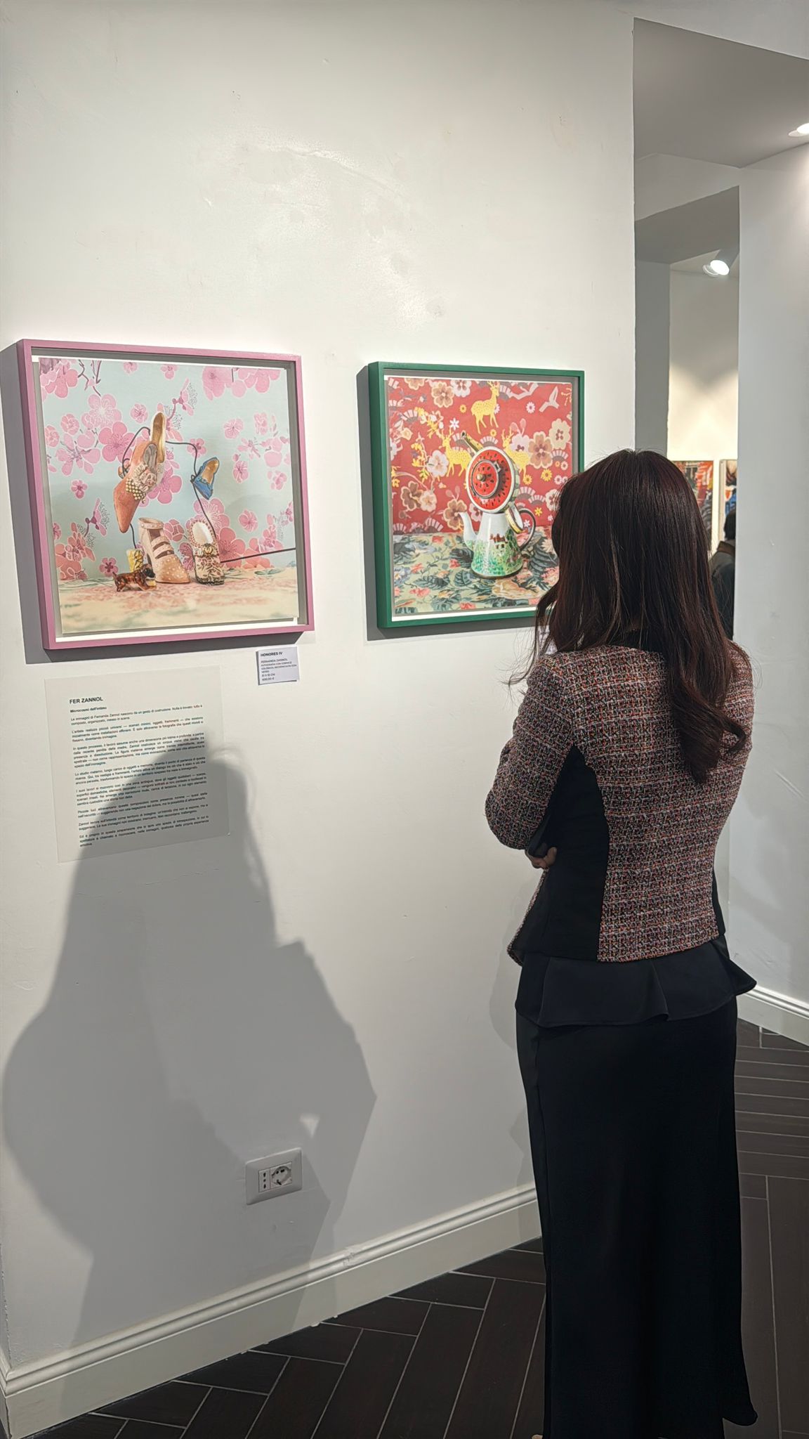 Le opere di Enrico Frusciante esplorano il confine tra digitale e pittorico, trasformando l’errore tecnologico in possibilità visiva e poetica. Afsané Mitus propone una pittura contemplativa, popolata da figure sospese e simboliche, in cui la dimensione visiva si intreccia con quella musicale e spirituale. Fer Zannol costruisce invece microcosmi fotografici attraverso installazioni effimere, dando vita a narrazioni ambigue in bilico tra reale e immaginario.