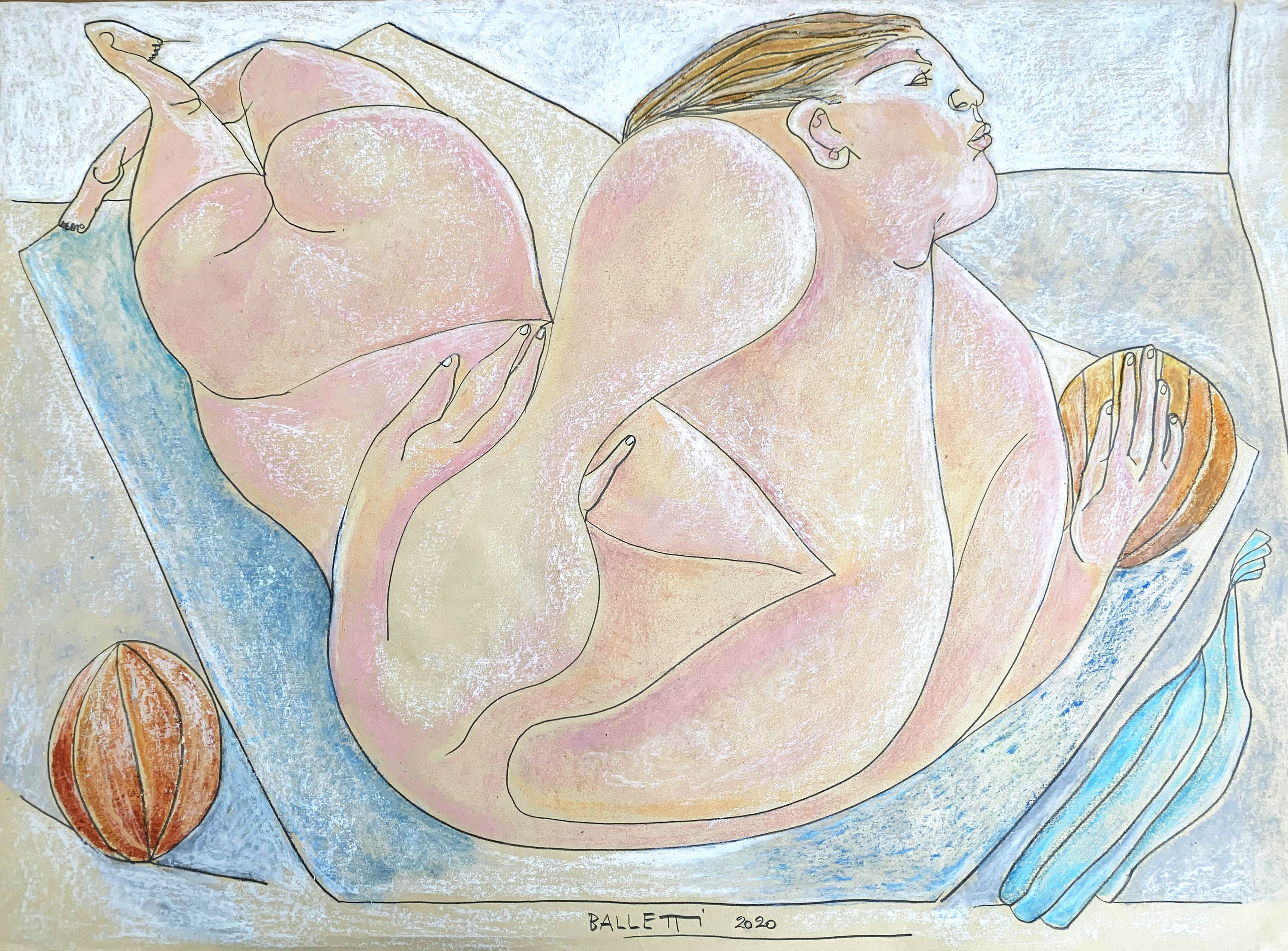 In mostra una selezione di circa 30 dipinti – tele, disegni e grafiche – realizzate da Mauro Balletti a partire dagli anni Ottanta, in cui appaiono, come scrive Francesca Alfano Miglietti nel suo testo critico, "i luoghi misteriosi dell'immaginazione. La selezione raccoglie opere in cui emerge una contaminazione con altri artisti, una sorta di piccolo nucleo di visionari e ribelli, Picasso, Fellini, Balthus, una sorta di 'compagnia' composta da relazioni immaginarie in cui si intrecciano malinconia e ironia. Ogni opera rivela un immaginario che viene da lontano, le figure si richiamano l’una con l’altra, tradendo un’origine comune, e tessono una trama che si evolve e si svolge, una trama che si rinnova nel continuo rivisitare i medesimi soggetti, ma sempre con un approccio e un’idea originali, attraverso le forme morbide di imponenti corpi maschili".