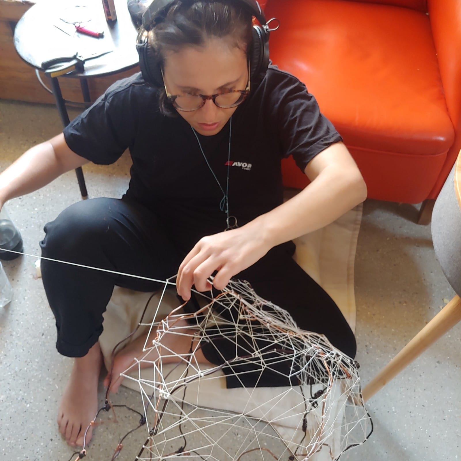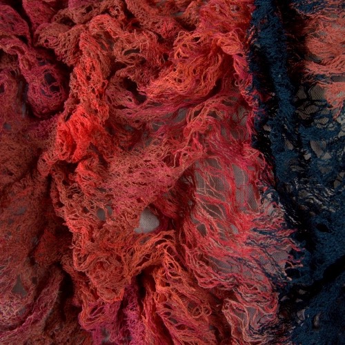 La ricerca dell’artista si fonda su una profonda riflessione sulla nascita, come atto di separazione. Il risultato sono opere realizzate interamente con la tecnica del merletto a macchina e dell’intreccio a mano che raccontano l’esistenza di ogni individuo nel suo continuo mutare nel tempo.