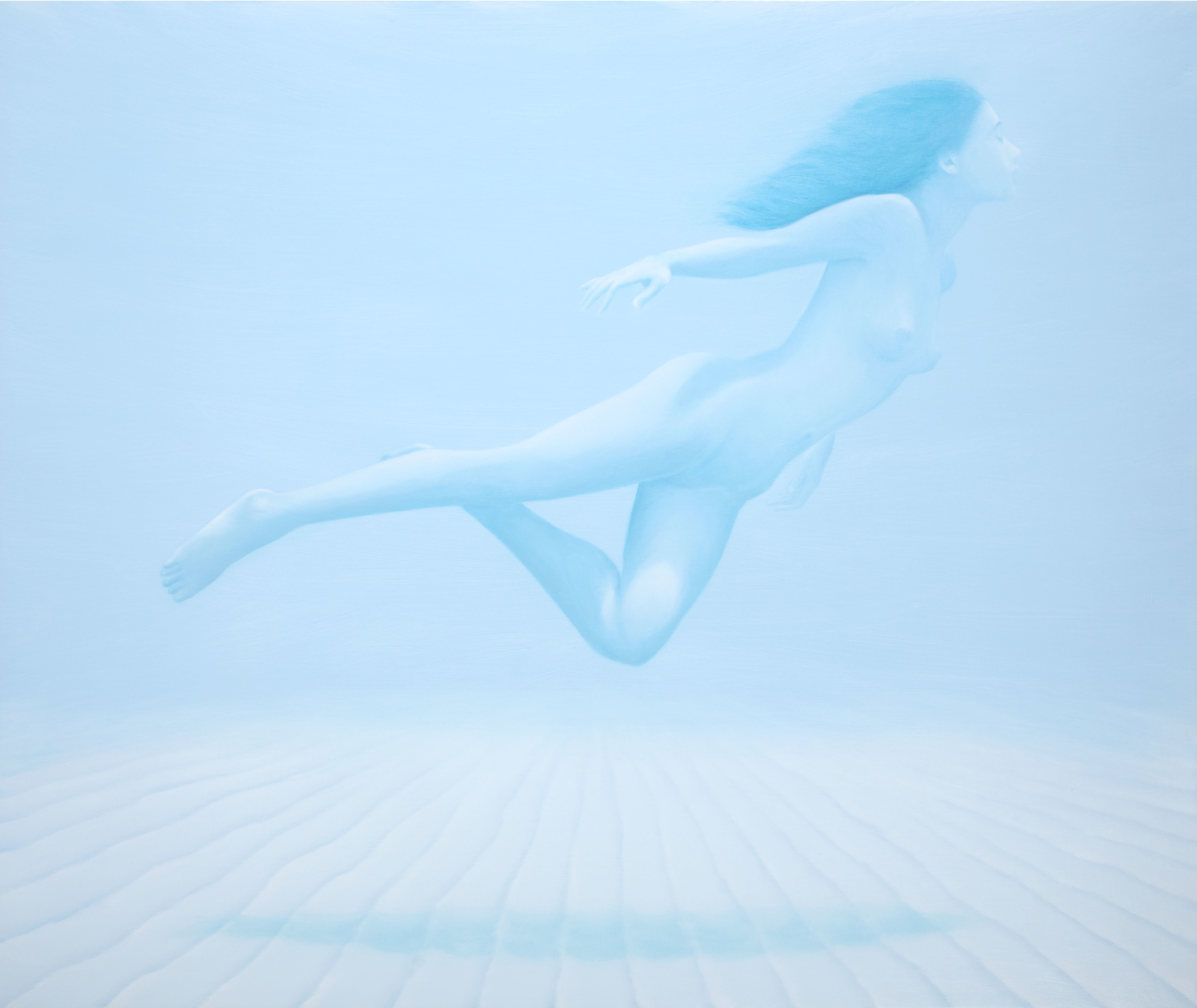 Da allora prosegue un intenso lavoro di studio della figura femminile immersa nell’acqua. Immergendosi con amiche disposte a posare, esegue fotografie e filmati chiedendo loro di assumere posture di sospensione, di abbandono, di felice isolamento, nella splendida cornice dei fondali del mare che bagna le coste Pontine, per poi narrare, con la sua pittura, questo magico stato d’animo.